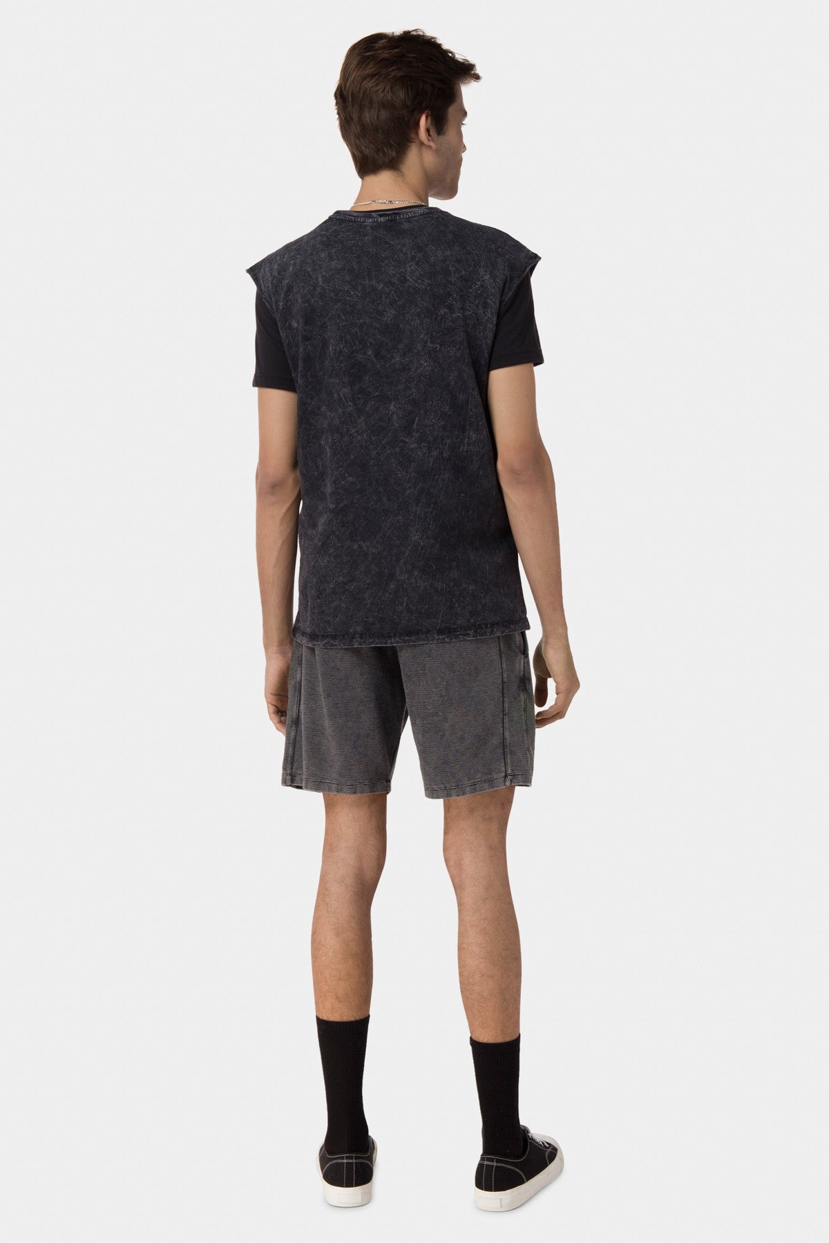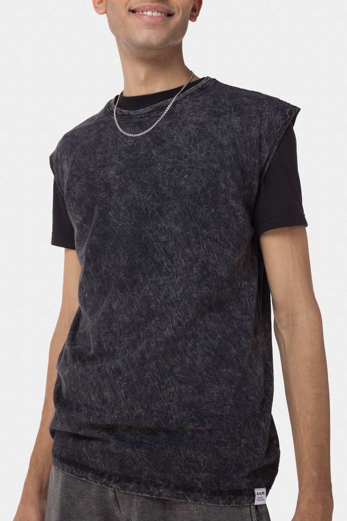 100% Cotton. Sleeveless T-Shirt With Crew Neck. Patchwork On The Hem